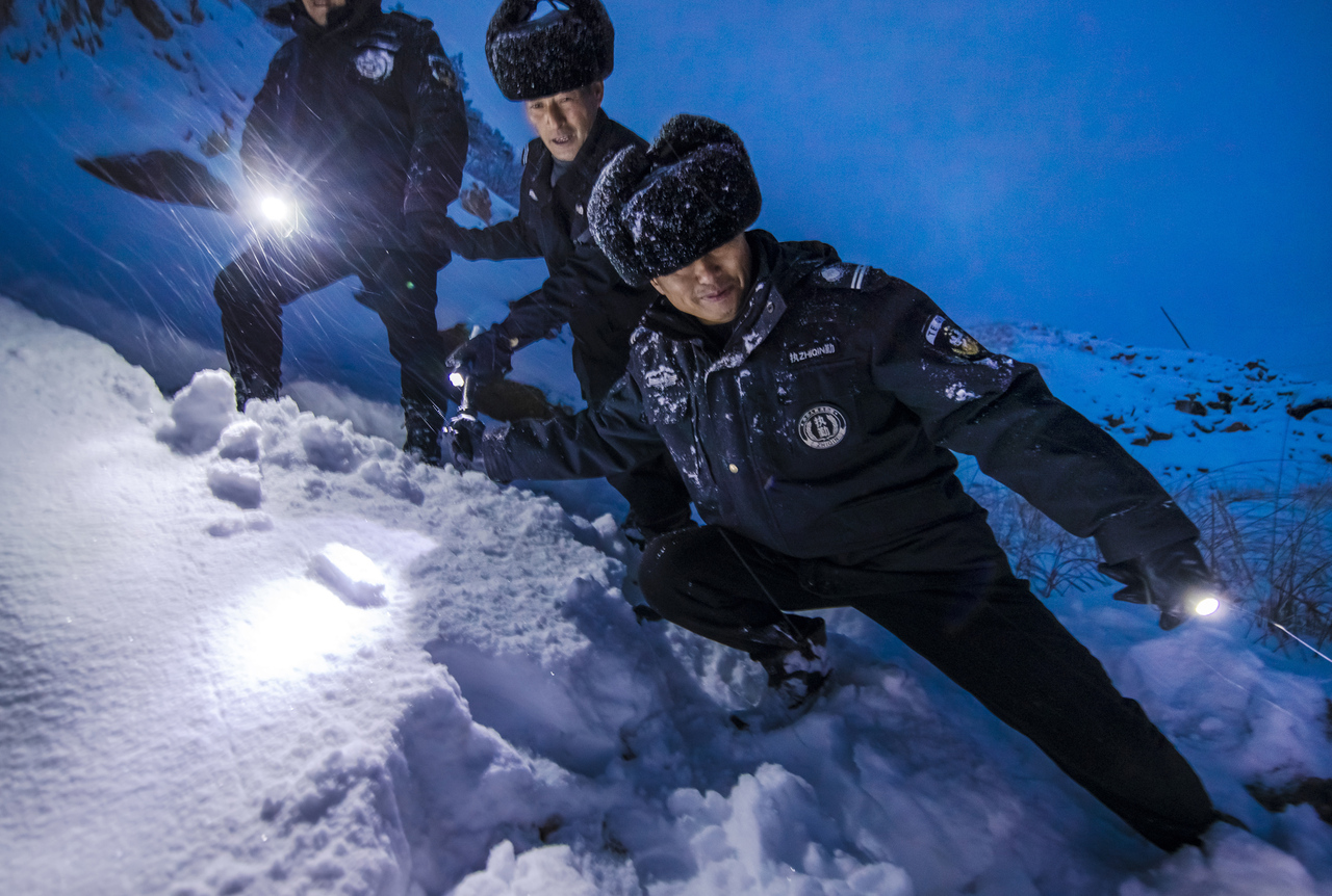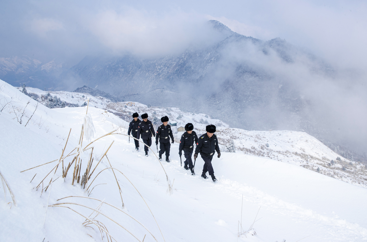 02、2025年2月23日,矿山陡坡路窄,干警们巡山风雪无阻。