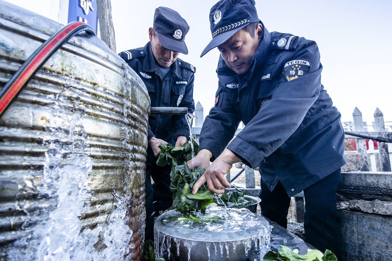 10、2024年12月29日,冬季气温下降至摄氏零下10 C°,滴水成冰是警员们的生活条件。