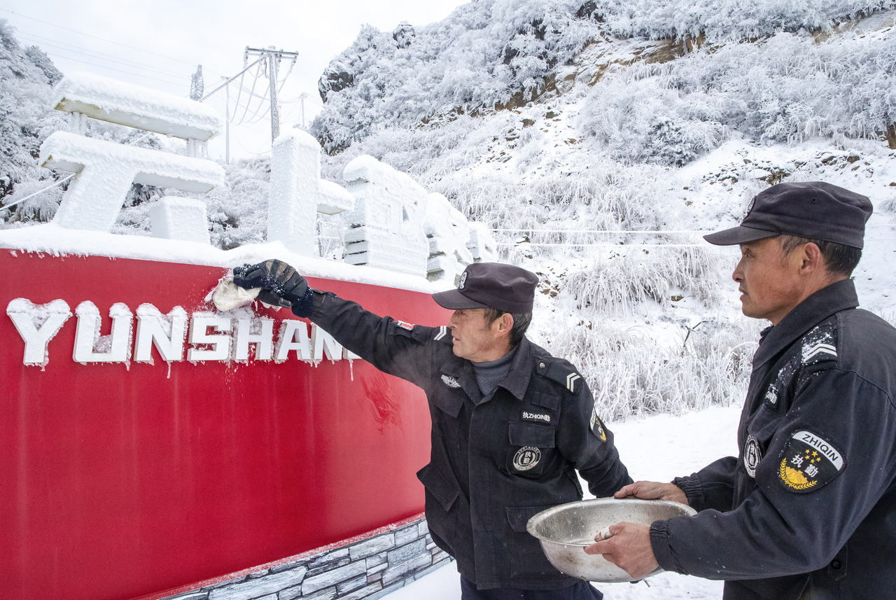 12、2026年1月21日,在积雪浮云端的玉岩山山肩,“云上警务室的执勤人员们不分昼夜守护着这份来之不易的安宁。