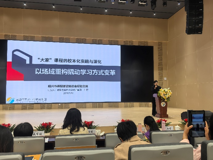 活动中,多位教育工作者围绕课程改革与教学创新进行专题分享。诸暨市实验小学教育集团、上虞区滨江小学、绍兴越城区、柯桥区小学以及文澜中学等的代表分别从场域重构、跨学科学习、个性化课程建设、学科课程本土化等角度展示了实践成果。绍兴市教育教学研究院戴军辉作题为《新课标背景下指向关键问题突破的课堂教学创新》的专家报告,从理论高度与实践路径两个维度,为与会教师提供了深刻的专业引领。