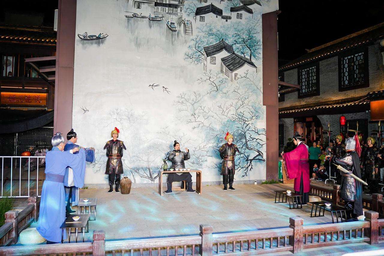 该表演秀以越王出征为故事背景,通过越王点将、投醪出征等故事,串连起完整的表演线路。演出时,现场游客、市民化身为越国子民,与表演者们一同演绎。